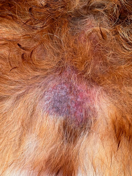 곰팡이 감염 털 빠짐, 원형 탈모, 피부 변색 동그란 형태의 탈모가 보임